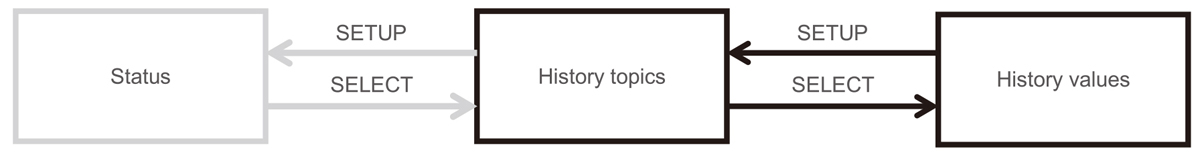 By pressing SELECT in the status menu, the history menu is entered. Here, the history stored in the MPPT can be viewed. This